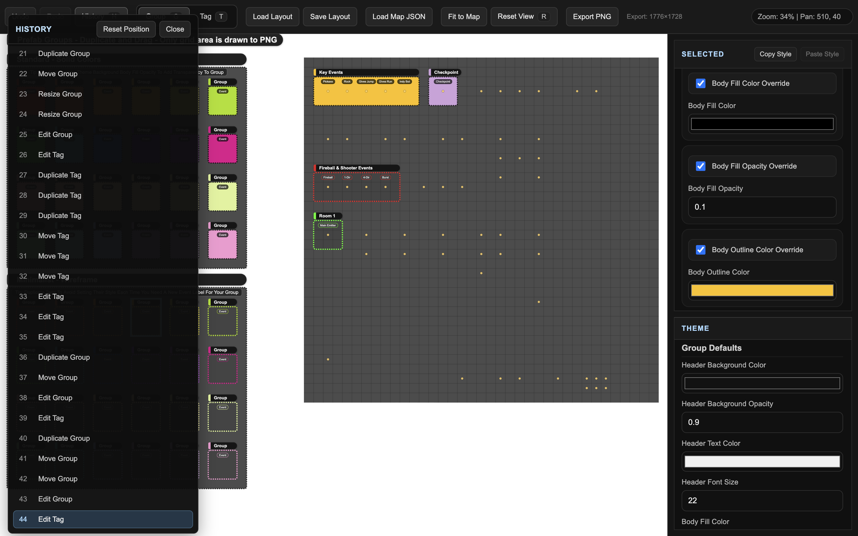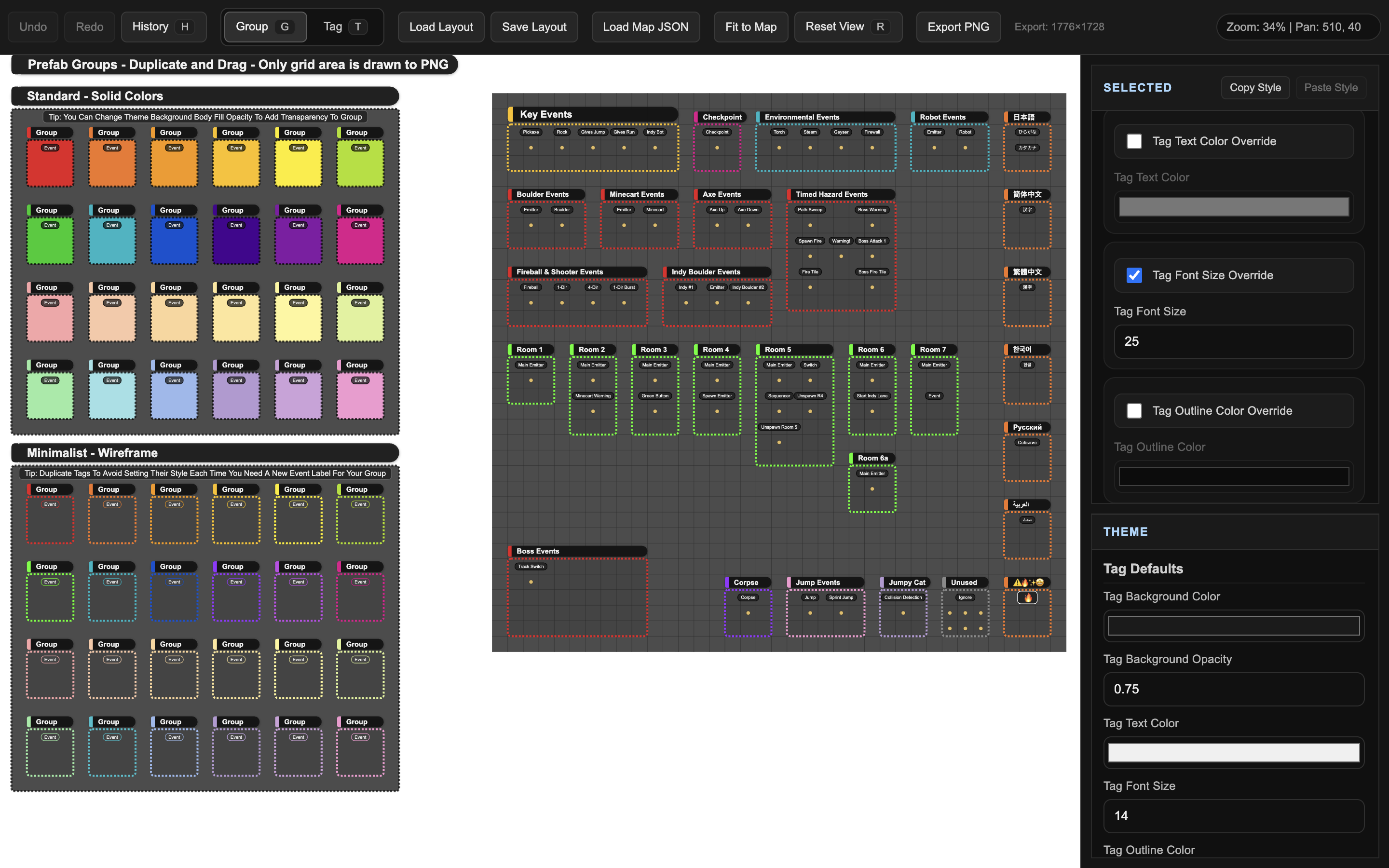 Create labeled group boxes and event tags so your spawn map is easy to understand at a glance.
